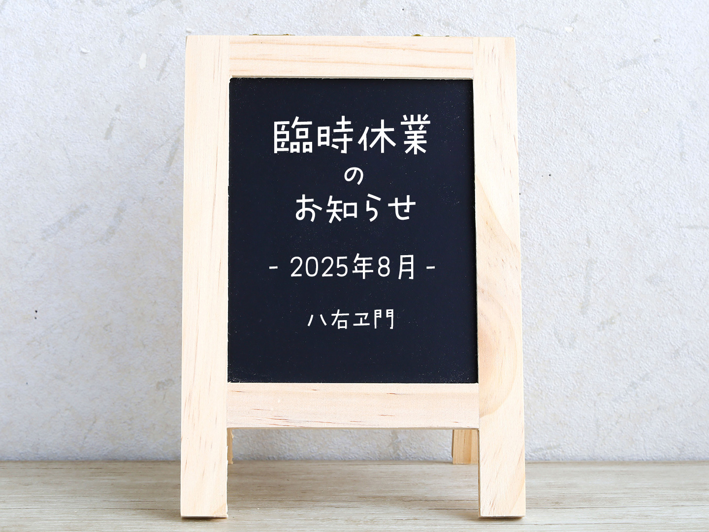 八右ヱ門 2025年8月営業・休業日程のお知らせ